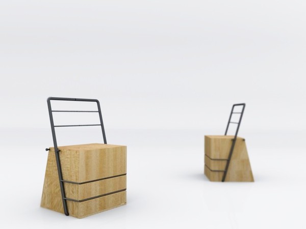 Typochair 2 est donc une chaise qui se monte en assemblant ses éléments sans outil, elle garde un profile très graphique et propose un certain confort par des solutions rudimentaires. elle traduit en quelque sorte une approche suprématique tant dans la forme que dans la fonction. »