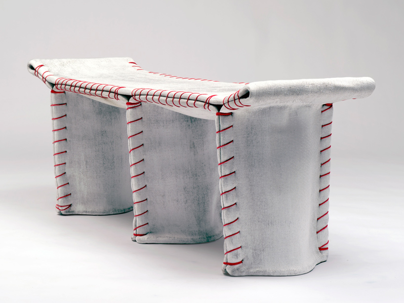 Une chaise et un banc ont été ajoutés aux œuvres du designer allemand Florian Schmid, Stitching Concrete sont construits à partir d’un matériau appelé  Concrate Convas (toile de béton) (CC) à la base développé pour construire des abris.