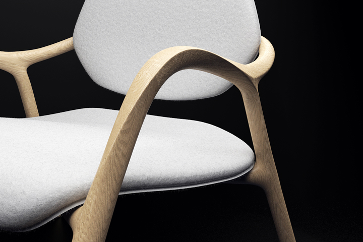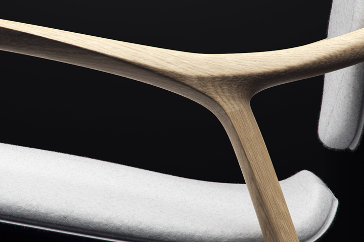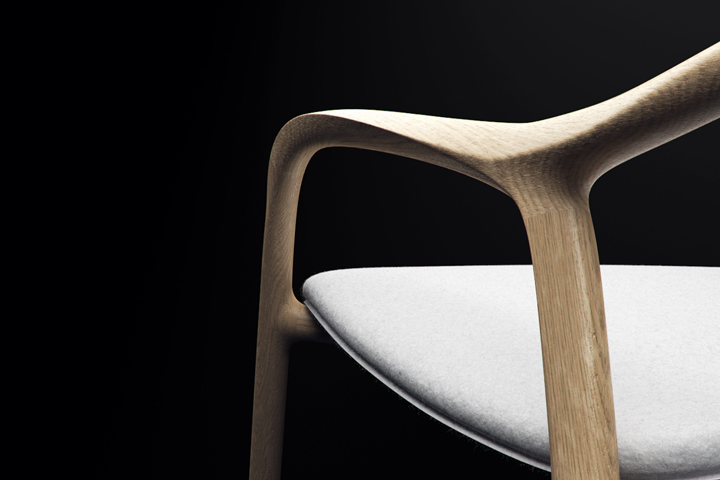 Selon  Simon Reynaud le designer français diplômé de l’université de Sheffield (Angleterre), la chaise en bois est une recherche sur le mariage entre la technique et le sensible, le travail du bois avec des outils de pointe et la délicatesse du matériaux. Les accoudoirs grandissent, poussent et leurs profils guident le regard et les mains lorsque l’on s’assoit. Ils invitent au toucher en donnant à la chaise une dimension sensuelle.