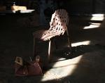 Basée à Jérusalem la designer industriel Sharon Sides a conçu Stumps Chair comme projet de thèse à l’Académie Bezalel d’art et de design. le projet porte sur le transfert des images de l’environnement sur d’autres matériaux industriels, des projets utilisant des procédés technologiques ou profilés métalliques sont scannés puis de l’acide gravé pour mettre en valeur l’histoire de l’arbre ainsi que son âge. le processus de production consiste à plier les feuilles en chaises, où le contour de la souche a été gardé intact, par conséquent, conférant à chaque pièce son caractère unique.