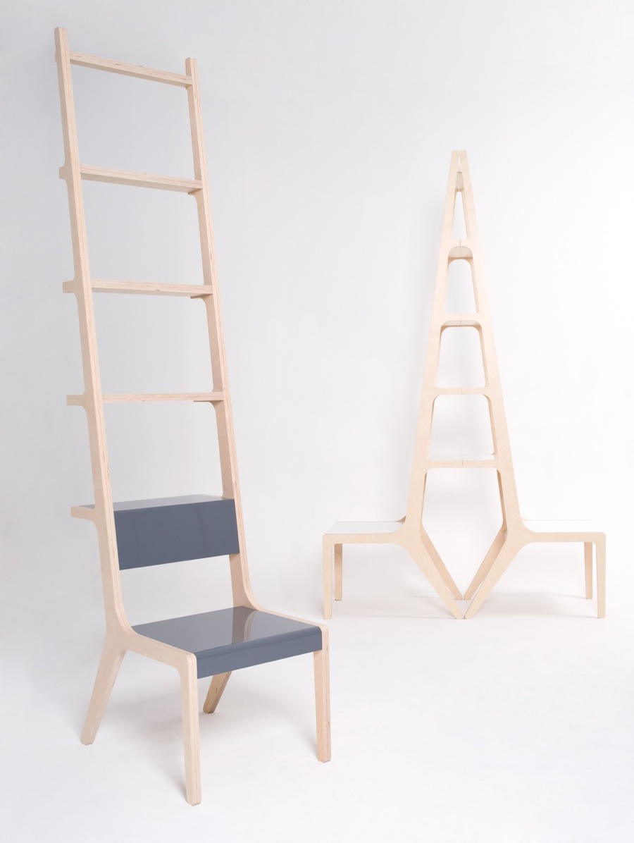 Pour lui une chaise n’est pas qu’une chaise, dans ce projet le jeune designer nous montre qu’une chaise peut aussi servir comme une échelle, une étagère ou même un étendoir à linge.