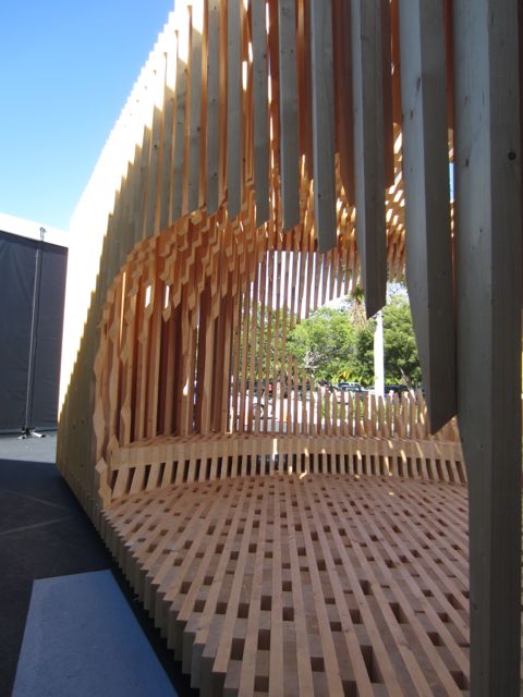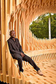Élu designer de l’année par le Design Miami, l’architecte David Adjaye est invité à présenter une installation inédite lors de l’édition 2011. Du 29 novembre au 4 décembre, sa structure « Genesis » devient le point de départ et de sortie du salon. Conçue entièrement à partir de cadres de bois, elle arbore une forme de prisme triangulaire dont l’espacement entre les parois permet de composer avec la lumière. Une expérience immersive qui offre aux visiteurs un point de vue particulier sur différentes galeries.