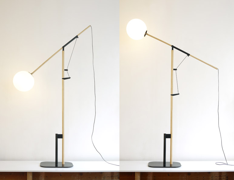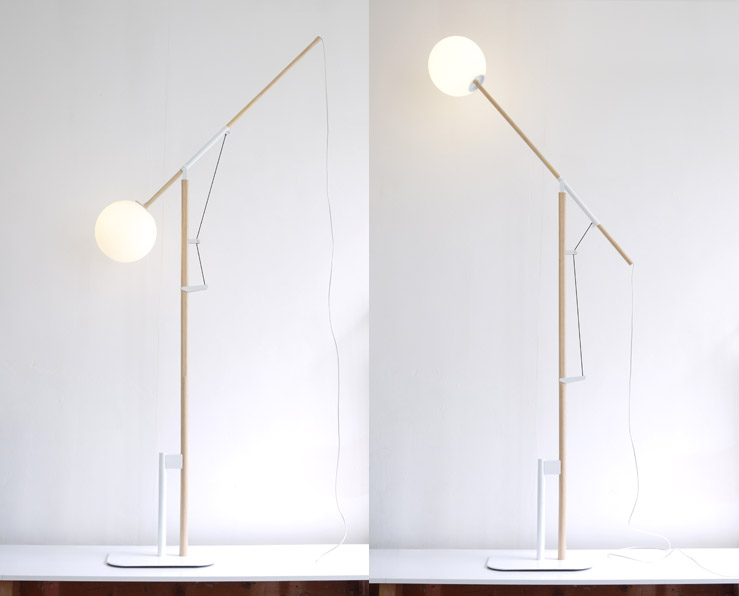 Une lampe sur pied articulée. Composée d’une structure articulée en pin et et acier laqué et d’un diffuseur en verre opalin nommée WHEREVER, c’est une source lumineuse légère et ajustable facilement par l’utilisateur. Le lampadaire WHEREVER est un prototype de 2010 d’Alban Le Henry co-signer avec Florian Delepine. présenté lors de la Paris Design Week 2010