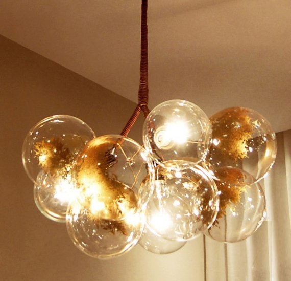 Son intérêt pour le design d’intérieur l’amène à concevoir l’étonnante série de luminaires qu’elle nomme Bubble Chandeliers, des suspensions faites d’une accumulation de bulles géantes en verre de la plus petite à la plus grande. Une collection étonnante disponible sur la boutique Etsy Jean Pelle laquelle expédie dans le monde entier. Des éclats de lumière qui brilleront avec poésie et beaucoup de naturel dans tous les intérieurs.