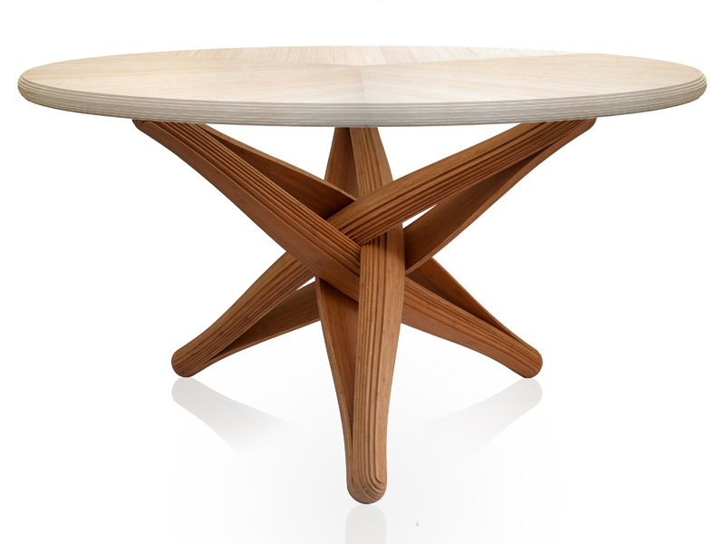 Le designer néerlandais J.P Meulendijks a créé la Table LOCK à partir de couches pliées de placage de bambou.