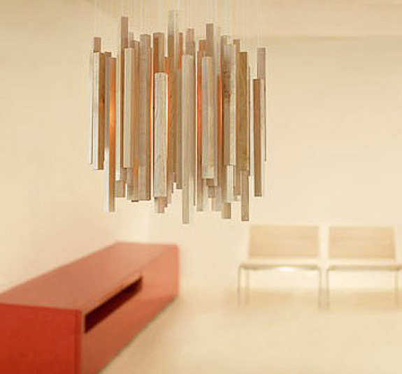Faite de fines pièces de bois accolées, La lampe Woods Suspension est imagination de Héctor Serrano le designer Londonien pour le fabricant Arturo Alvarez. Son volume sculpté créé un élégant jeu d’ombres et figure une forêt stylisée d’où s’échapperait une mystérieuse lumière.