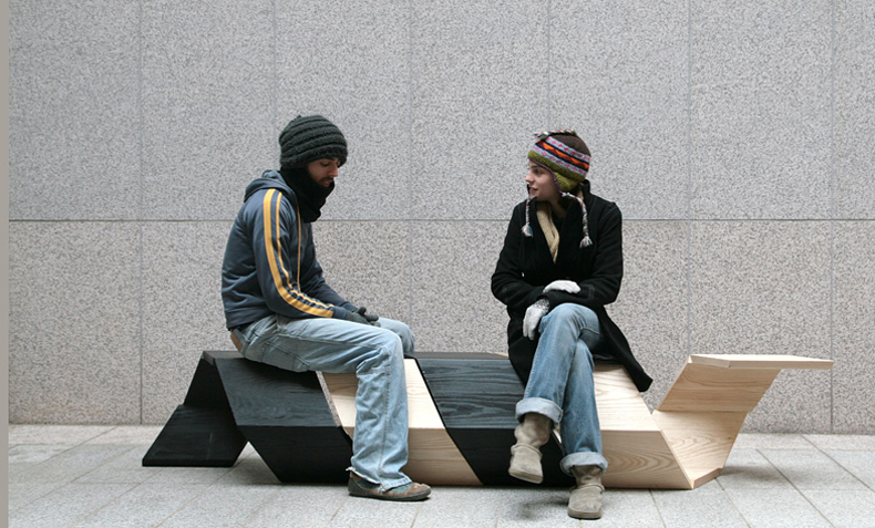Le designer coréen Cho Neulhae s’est inspiré de la forme d’une vis pour créer ce banc en bois intitulé Screw It (visser). Ce mobilier se compose de deux formes qui se glissent l’une dans l’autre. Maximum de quatre personnes peuvent s’asseoir sur la chaise en même temps. Cette chaise a une possibilité d’être utilisé pour les espaces publics, les halls de bureau et ainsi de suite.