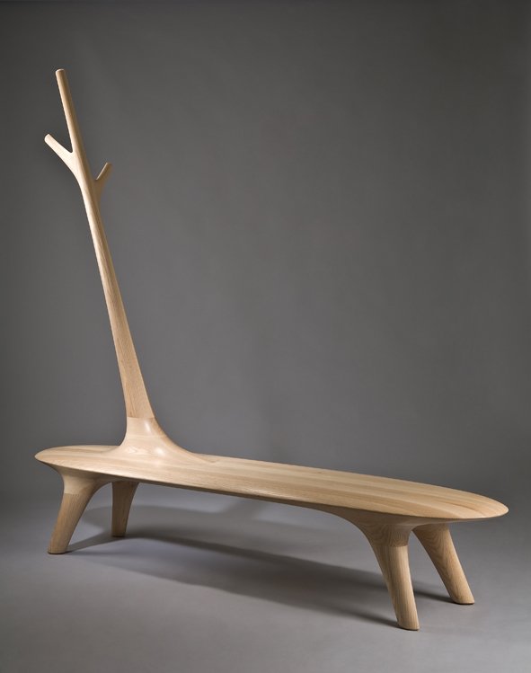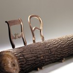Un arbre tombé peut servir de siège. L’ajout de bronze dossiers de chaises classiques en fait une pièce de mobilier originale, un croisement entre nature et design. Jurgen Bey indique clairement qu’il est ridicule de transporter des arbres quand ils sont disponibles localement. Par conséquent, seuls les dossiers des chaises sont à vendre.