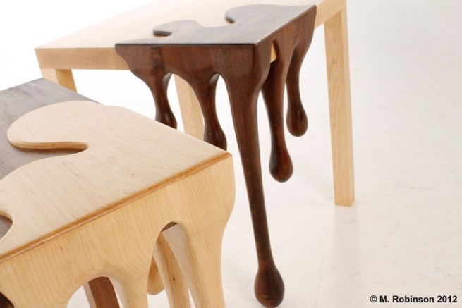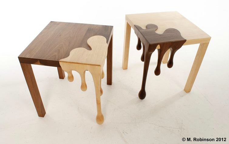 Pour son projet final tout en étudiant la fabrication de meubles au Collège de Leeds Art en Angleterre Matthew Robinson nous propose Fusion Tables: Une table en noyer et érable à l’allure très cartoons qui dégouline d’ingéniosité.