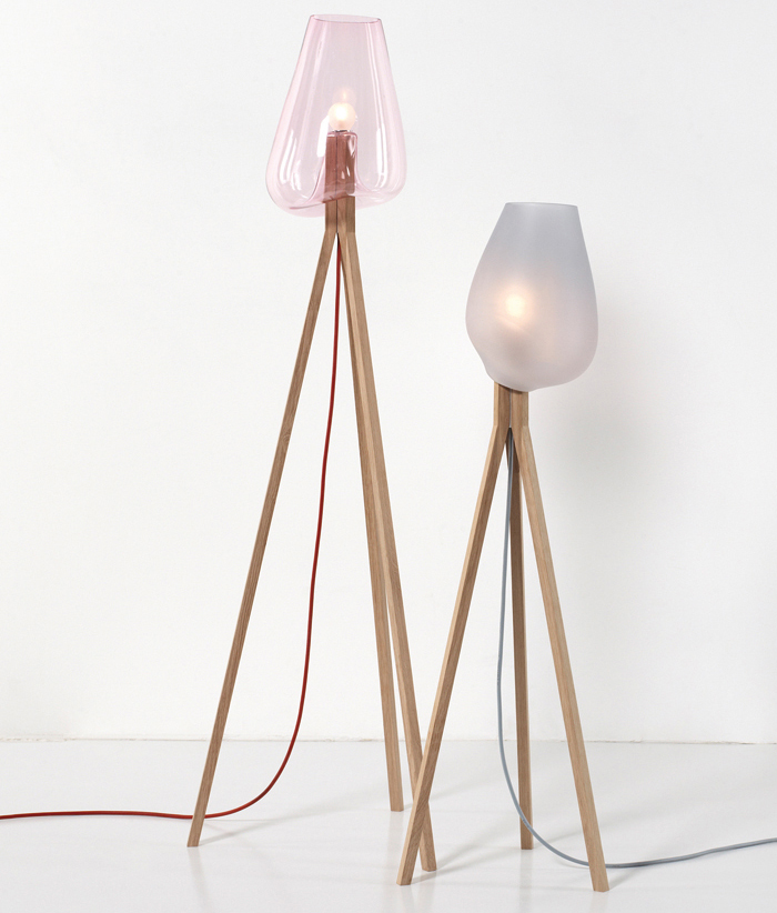 Créée par Hanna Krüger la designer née à Berlin, add.on est une série de lampe fait à la main. Lors de la fabrication, l’applique en verre est soufflée directement sur trois pieds en bois composées dans une configuration trépied. C’est le corps en verre avec un tube en aluminium pour la lumière qui fixent les jambes ensemble. L’outil du processus de production devient une partie du produit dans un ajustement parfait et unique entre le support et la lampe.