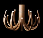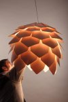 Crimen PineCone lampe se compose de 56 plaques, sans un cadre interne en raison de l’arrondi des formes plaques se forment les lacunes à travers lequel la lumière passe. fabriquée dans placage de bois d’érable.