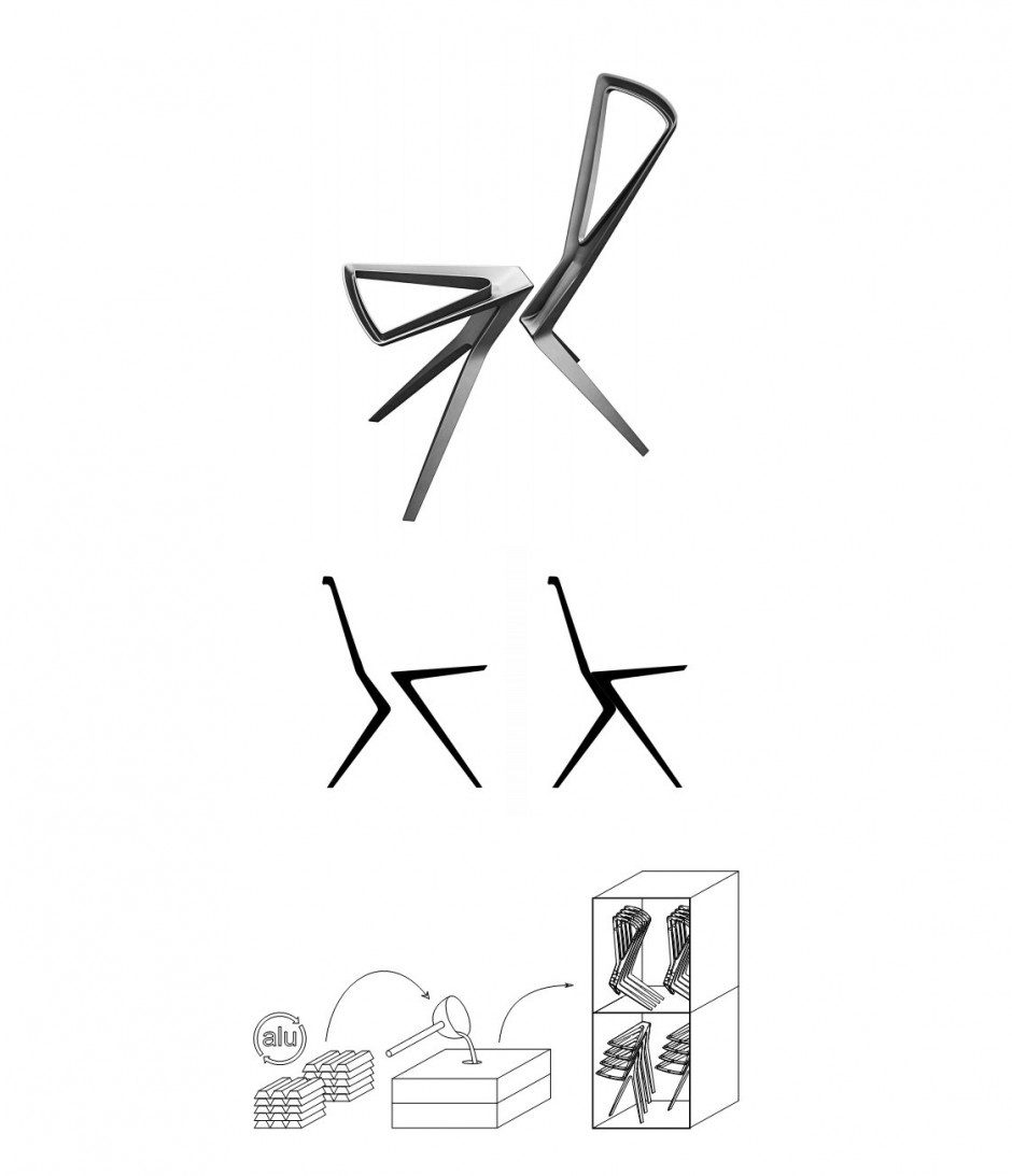 Mathieu Delacroix: The Asco chair seamlessly combines two techniques, two materials, two times: braiding and aluminum. Ancestral technique of assembly and ornamentation, the braiding is very early used in furniture adopting several forms and many materials: palm, raffia, ropes, leathers, synthetic fibers … Aluminum is a material intimately linked to the industry. It is used at all scales and in many fields: aviation, automobile, architecture, domestic spaces … Asco uses the technique of bending aluminum tube to trace the skeleton of the chair. This double and light structure comes to accommodate two types of braiding. A simple weave joins the two tubes that draw the file. Two sets of loop weaves intertwine with the lower frame to create a comfortable seat. Asco comes in several finishes. The structure is powder coated black or white. The backrest and seat are braided in ropes of colored synthetic fibers. Subtly mixing technology and tradition, Asco wants to be a chair that is both light and mobile, comfortable and elegant, that adapts perfectly to the outside and the inside.