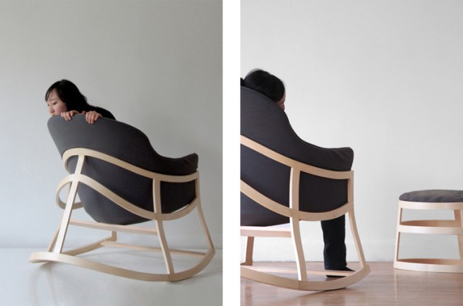Dans le cadre d’un projet l’étudiant canadien en design industriel, Brendan Gallagher a réalisé un fauteuil à bascule nommé Rocking Chair. il était chargé de la création d’un meuble en se basant sur les qualité de style chez un styliste. Il a choisi pour cette exercice le couturier Bustle clothing.